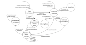 Grace à Nonaka et Takeuchi (1995), qui ont créé le modèle SECI (théorie de la création de connaissance) on sait que le savoir nécessite un espace contextuel pour émerger. L’article s’appuie explicitement sur cette théorie lorsqu’il évoque l’importance de l’espace physique pour déclencher les interactions et la création de sens partagé. Aussi Von Krogh, Ichijo et Nonaka (2000), ils parlent du soutien organisationnel au partage, et dans ce cadre, les auteurs utilisent l’idée pour justifier l’impact des mesures prises par l'entreprise en telles que rotation de membres, pair programming…etc pour améliorer le partage de connaissance entre membres de la organisation.
