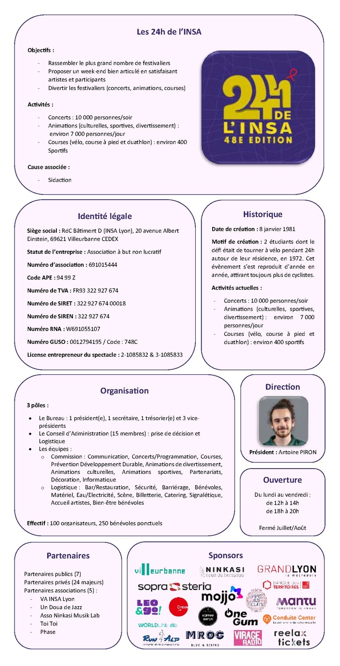 Chacune des deux branches des 24h de l’INSA se divise en équipes qui agissent à leur propre échelle. Chacune des équipes responsabilise ensuite ses membres en leur assignant une tâche spécifique pour laquelle une fiche de poste existe mais n’est pourtant que très rarement consultée dans la pratique.