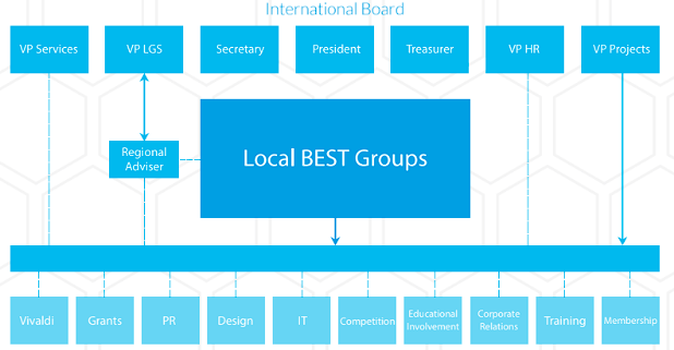 Chaque LBG est dirigé par ce que BEST appèle un Local Board (au contraite de l'International Board ou International BEST) qui est constitué de :