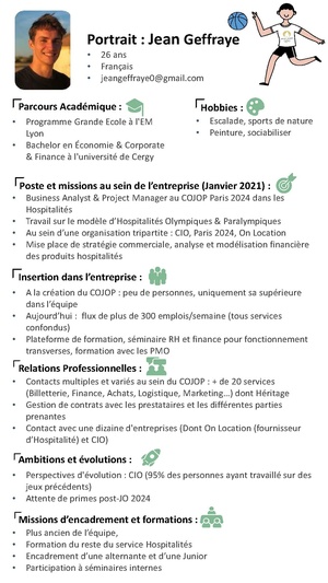 Enfin, une membre de notre équipe à la chance d'avoir un frère travaillant au comité d'organisation des jeux olympiques et paralympiques de 2024. L'entreprise visée (qui s'avère être une association) nous plaît énormément car elle est dans un contexte proche et amène un aspect nouveau car cela ne fonctionne pas comme une entreprise "classique". --> Choix définif de travailler sur : Comité d'organisation des Jeux olympiques et paralympiques de 2024